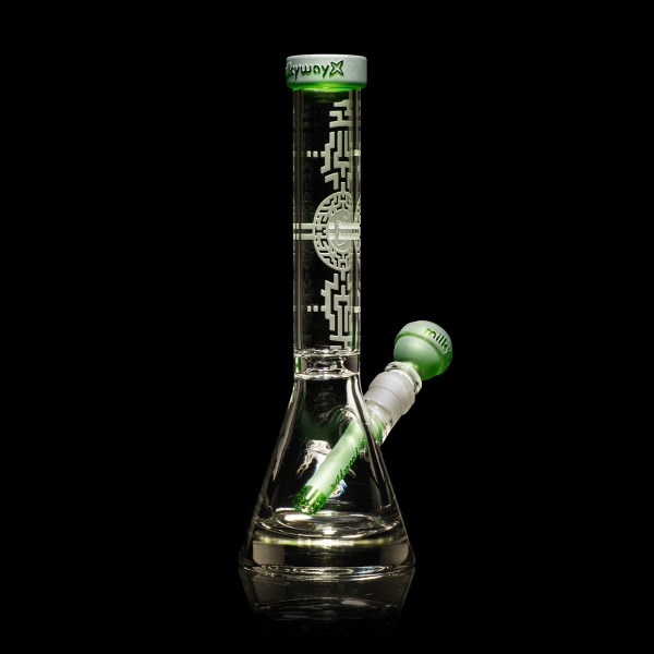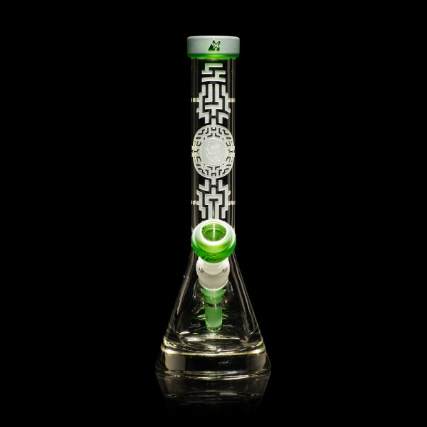 Looking for an affordable high quality 10.5 inch beaker bong at a low cost? You’ve found it! It’s a 10.5″ tall 7mm (100mm base) beaker bong with Orbit X bong bowl. It comes with our Bio-Mark pattern all along the tube. It comes in Clear, Smoke and Green color variations.