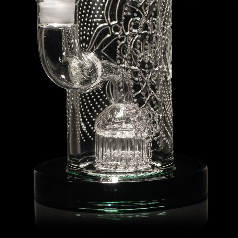 this rig is comfortable to hold and use, delivers smooth hits, is sturdy, and of course, beautiful. sometimes I’ll just sit and stare at it because the etched flower is just so pretty. it’s also easy to clean. highly recommend 🙂