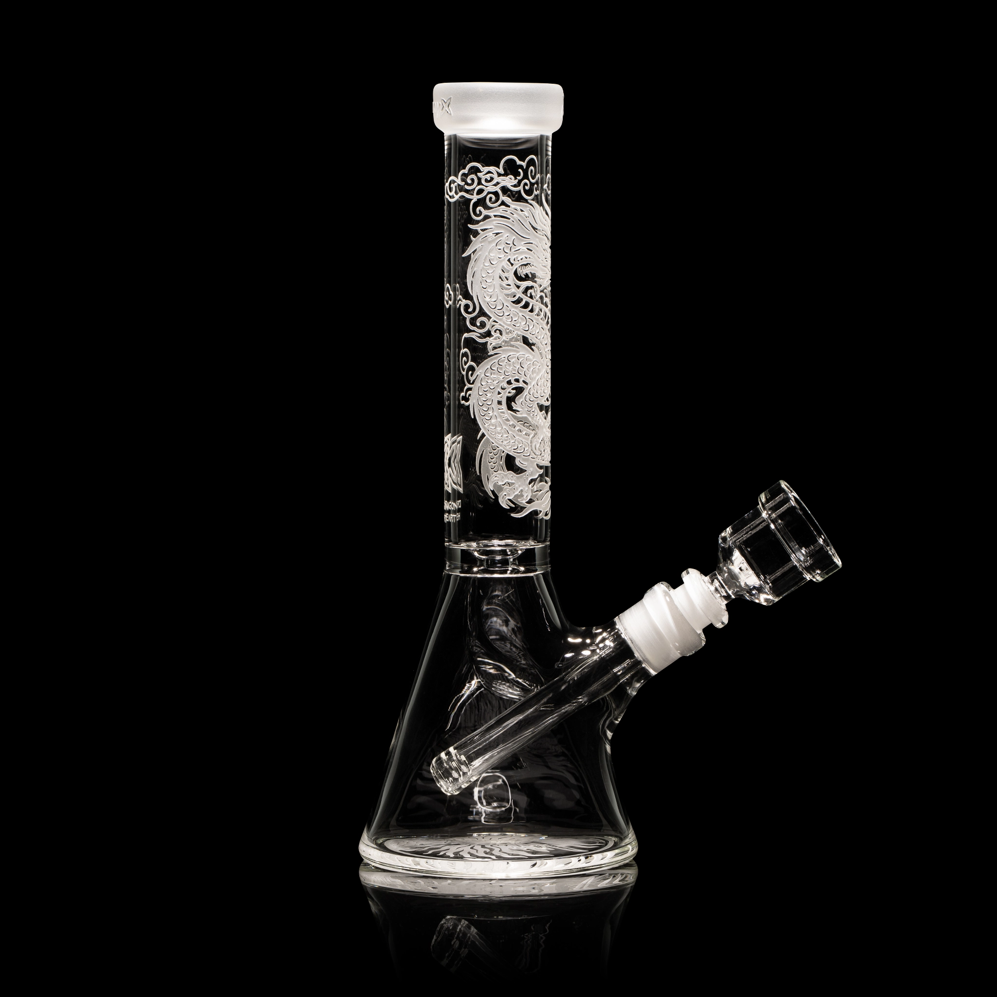 The 10” version of Dragon Heart is compact and full of power. It features a single-layer sandblast of an Asian style dragon. Clean, direct function on durable glass. Comes with bowl and downstem.