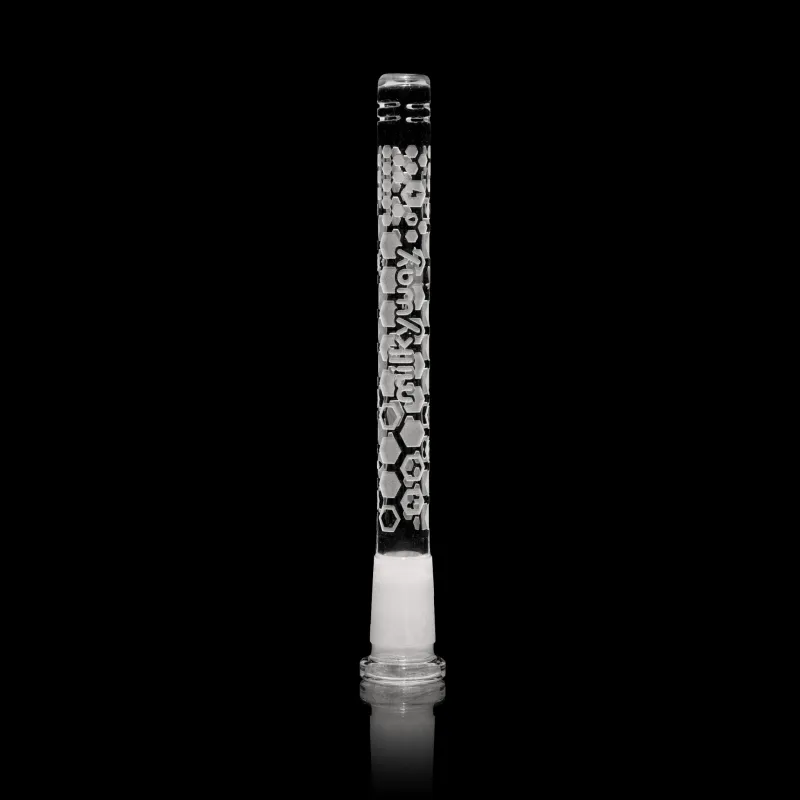 This collectors edition exclusive is a throwback to the first batch of Milkyway beakers in 2018. Which were the only ones that came with these custom stems. This downstem was designed specifically to match with MK-5 (Bee Hive Beaker). It also works well with MK-105 (Pink Bee Apiary Beaker).