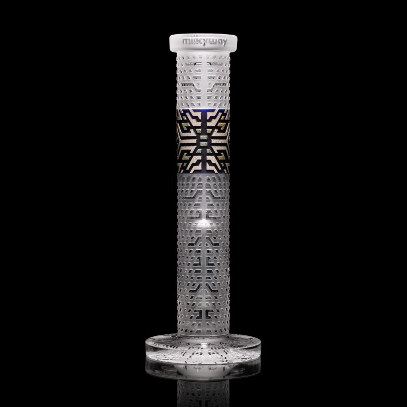 This 9mm thick 12” Straight Tube is from the Bio-Tech Collection, a series designed with the intention of creating the perfect ergonomic grip. This Tube depicts the crystallization of empath waves, it features our signature heart icon and comes with a color layered downstem & Orbit Bowl. The base includes a double layer sandblast and has an ice-restriction. {Trivia: widely unknown, the Milkyway heart icon is an upside-down bud.}