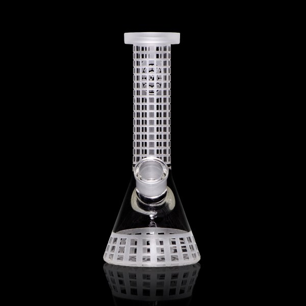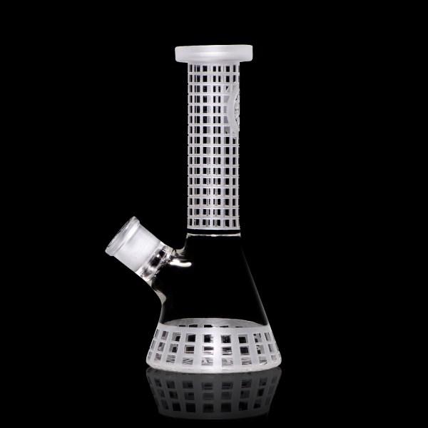 This elegant 7.5” mini beaker was created with functionality at the forefront… It’s square grid deep sandblast design is incredibly anti-slip, and looks pretty neat too. The square grid is positioned in the main handling areas, the tube and base.