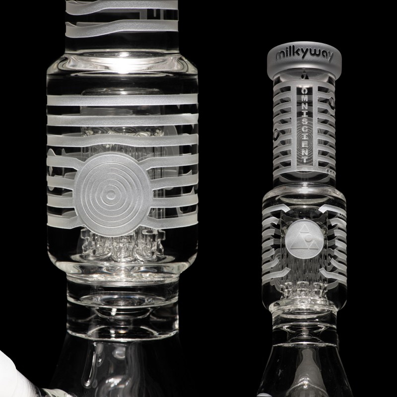 The Milkyway Universe pattern has always played an important role in bringing different themed products together. With ‘Omniscient’ we take the ‘Oculus’ concept to a whole new level. This piece is a metaphor for the contrast between macro universe and the micro universe. The combination of bold and super detailed elements makes this piece a wonder to look at. It has two percolation chambers, made up of a classic beaker and showerhead perc. The super thick base and heavy-weight construction makes it a sturdy and reliable piece, not to mention the smooth and thorough filtration.