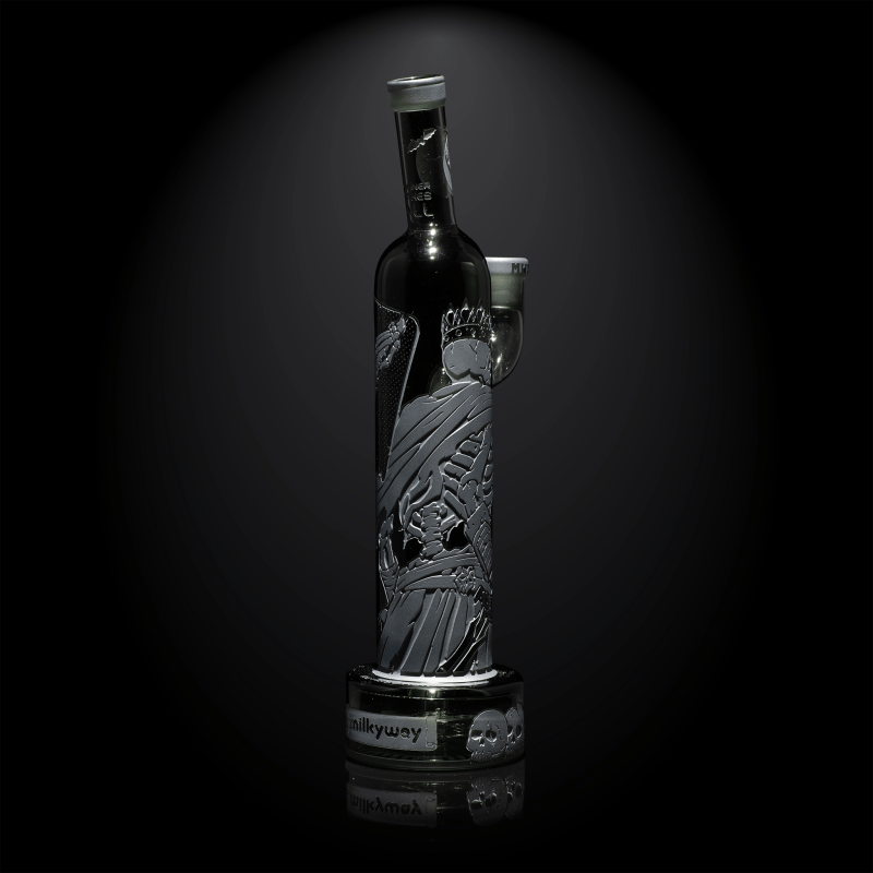This rig is designed with a unique puck-like structure that enhances water dynamics, creating rigorous, splash-free filtration through donut-style percolation. This, combined with a showerhead percolator, ensures exceptionally smooth and clean hits, intensifying the dramatic saga with each use. Perfect for those who revel in the dark narrative interwoven with superior functionality. Crafted with our innovative Micro-SB Tech, “Retribution” displays multiple textures that enhance its fine details and add depth to its ghostly narrative.