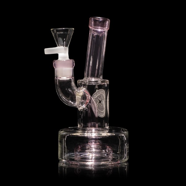 This piece features a puck base, creatively designed with diagonally aligned perc holes. These strategically placed holes induce water to swirl vigorously within the puck base, ensuring maximum filtration and the creation of rapid, sizable bubbles. Adorning the back is a meticulously double-layered Milkyway X motif, adding a bold and distinctive touch to its appearance.