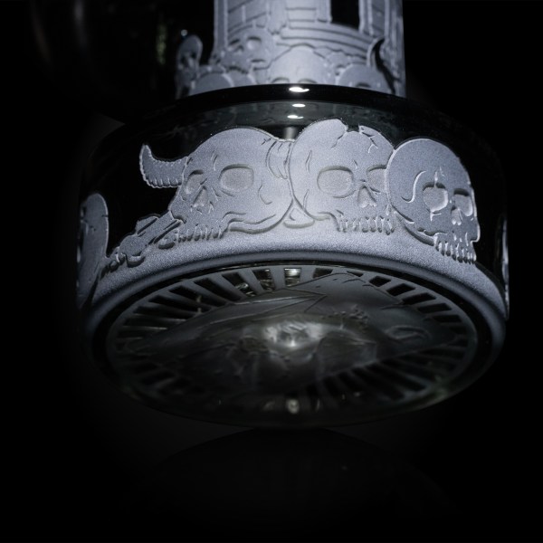 We crafted this rig using our advanced technique known as ‘Micro-SB,’ showcasing the pinnacle of our skill and resulting in one of our most intricate and meticulously designed pieces. Taking inspiration from games of games and tyrant kings, this 8” rig perpetuates the ongoing card game between King Horan and Death.