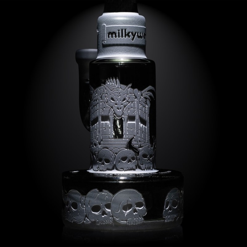 We crafted this rig using our advanced technique known as ‘Micro-SB,’ showcasing the pinnacle of our skill and resulting in one of our most intricate and meticulously designed pieces. Taking inspiration from games of games and tyrant kings, this 8” rig perpetuates the ongoing card game between King Horan and Death.