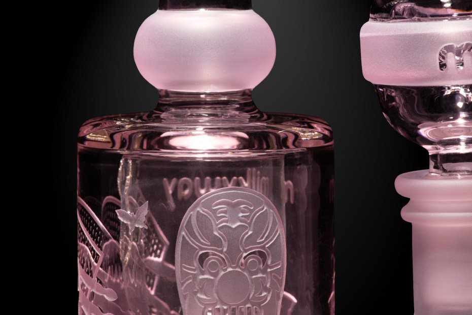 This highly detailed glass bubbler features intricate artwork of the classic Kabuki mask, textured clothing, and Geisha, creating an elegant and beautiful product that’s finished with sandblasted detailing on the tube and chamber.
