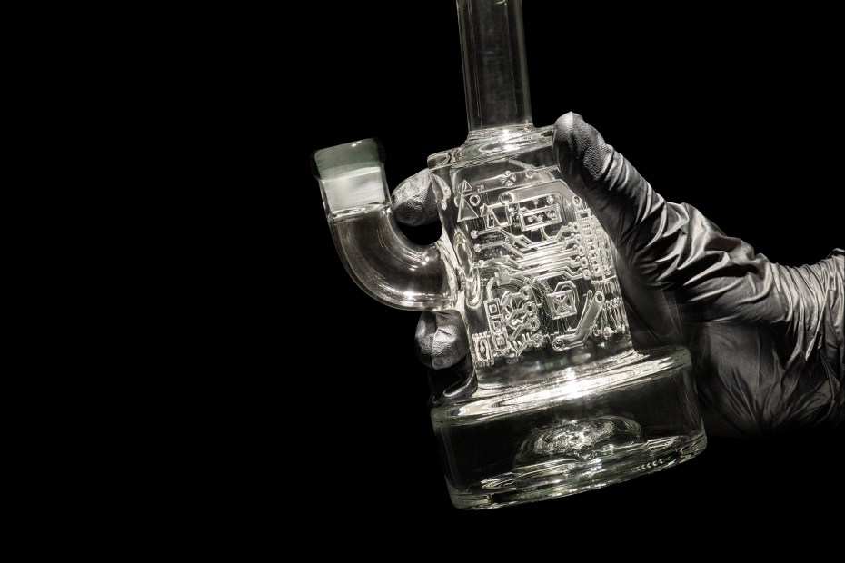 The dab rig features intricate detailing throughout, representing an advanced alien species that has colonized the Triangulum galaxy. Embracing advanced technology, this is a truly futuristic option for fans looking for a cosmic escape.