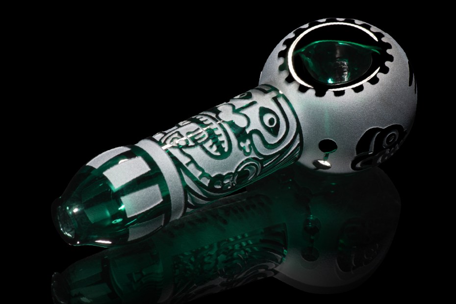Finally, the mesmerizing Maya glass pipe is inspired by ancient Maya artwork and features an intricate pattern that captures your attention. Carefully created by our sandblast specialists, this premium hand pipe has been designed to ensure optimal grip and durability without impacting functionality, making it the perfect companion for your next smoking session.